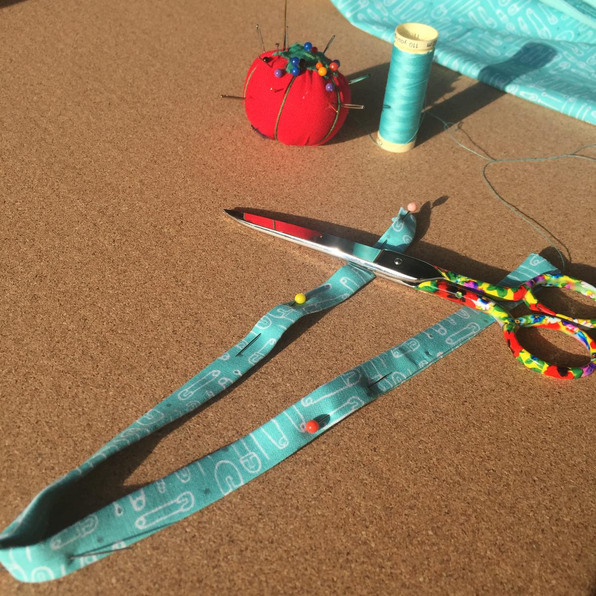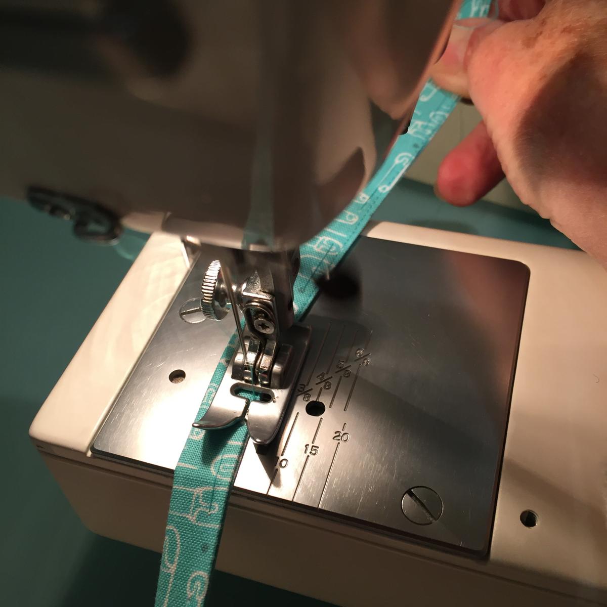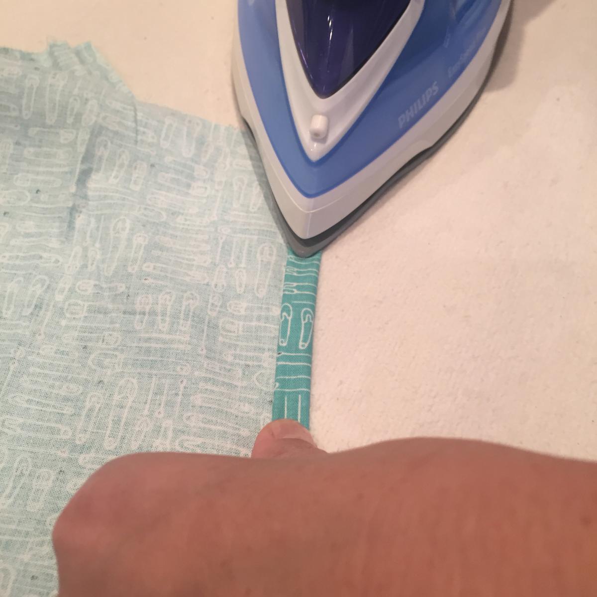 Paso 4: vamos a completar el neceser con una correa lateral, para ello hacemos una tira de 1 cm de ancho, con la plancha damos la forma, hacemos un pequeño hilvan, y para finalizar cosemos a máquina.