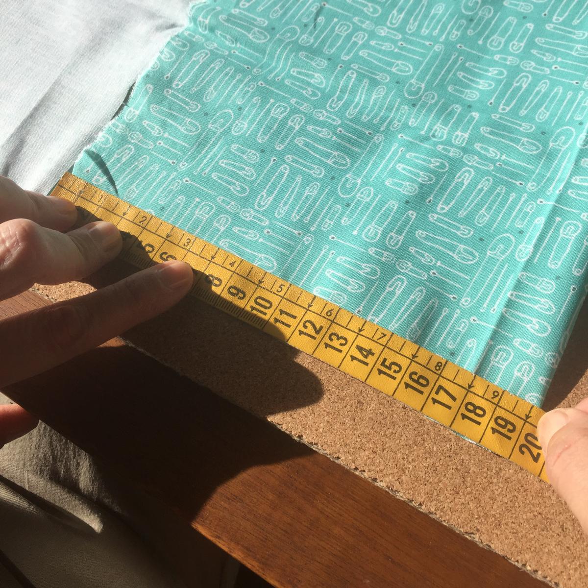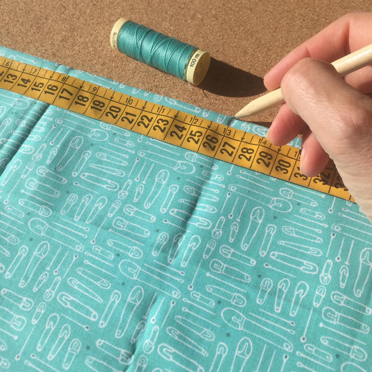 Paso 1: queremos que nuestro neceser sea de 24 x 20 cm, para ello cortamos la tela en forma de rectángulos de 26 x 42 cm, ya que necesitaremos algo más para hacer el dobladillo.