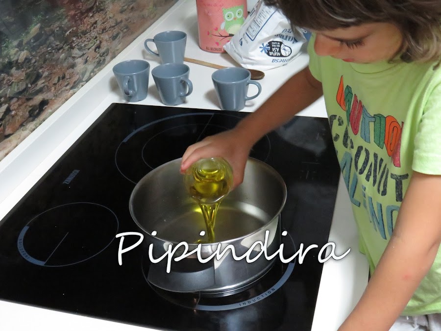 En un cazo ponemos el agua, la sal y el aceite y lo ponemos a temperatura media.