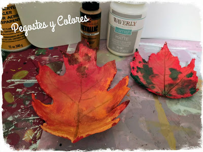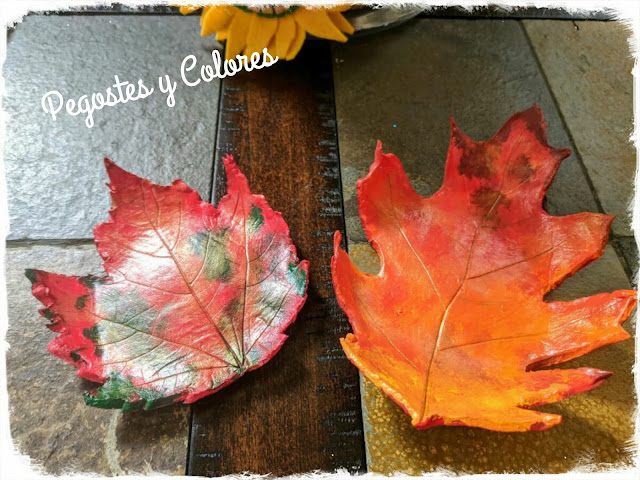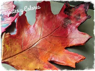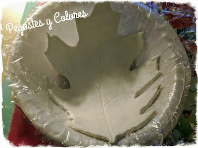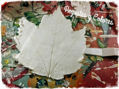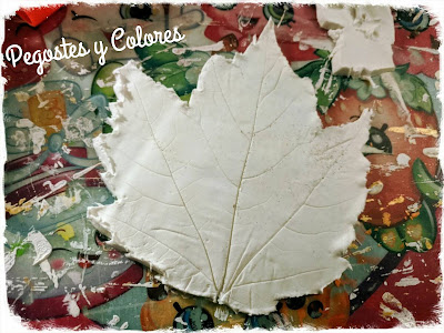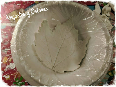Ya tenia mucho tiempo que queria hacer este trabajo con el que participo. Se trata de un par de platos de pasta moldeable de secado al aire, usando hojas naturales de árbol para darles la forma.