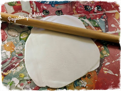 2.- Tomamos una porción de la pasta moldeable de secado al aire, la formamos en una bola y la extendemos con un rodillo o algo similar, como si estuviéramos extendiendo una masa de pay. Entre mas gruesa sea, mas fuerza tendrá el plato, no es recomendable dejarla delgada.
