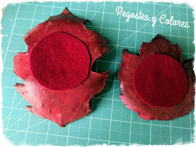 9.- Por ultimo corte un par de círculos en fieltro color rojo y los pegue a la base de cada plato con tacky glue, para que no rayen la superficie donde los ponga y a la vez se protejan un poco mas.