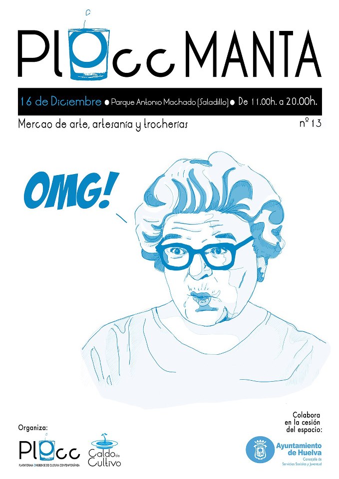 Llegan los polvorones, unos Reyes del Oriente e incluso un gordito vestido de rojo en un trineo y con todo ello llega de nuevo a la ciudad... el 13º PLOCC-MANTA"Mercao de Arte, Artesanía y Trocherías". La manta de la cultura llega en esta ocasión al Parque Antonio Machado el domingo 16 de diciembre. Habrá puestos, conciertos, DJs, recitales y todas aquellas actividades que nos propongáis.