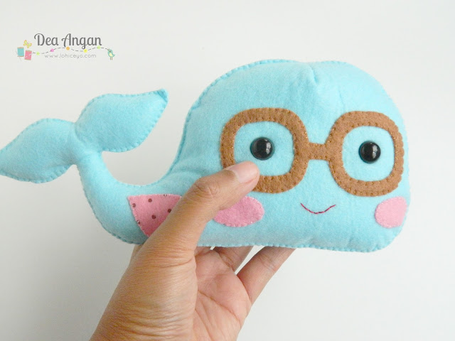 Estaba muy entusiasmada para crear otra ballena de fieltro, así que hice esta ballena. Se llama Willie; Willie El Ballena. Willie le gusta mucho leer historias de ficción y su historia favorita es Pinocho. Cuando le pregunté, ¿por qué te gusta mucho Pinocho? me dijo porque su tatara-tatara-abuelo estaba en la historia.