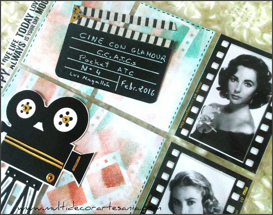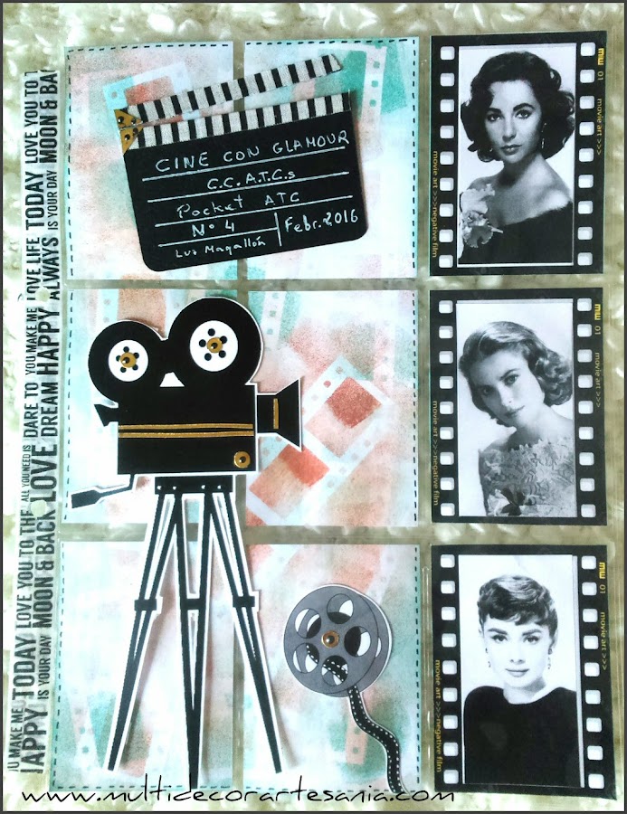 Después de esta "tonta" explicación os voy a mostrar mi Pocket Letter dedicada al cine que además, como pedía el reto, tiene glamour.