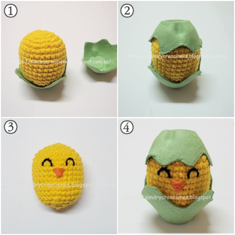 Y ya tendríamos nuestro pollito con cáscara realizado! Solo nos ha dado tiempo de hacer uno pero nos guardamos las otras partes de la huevera para realizar alguno más y vosotros, os animáis a hacer uno?