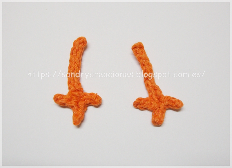 - Realizar 8 cadenetas con el hilo naranja y la aguja de crochet o ganchillo.
