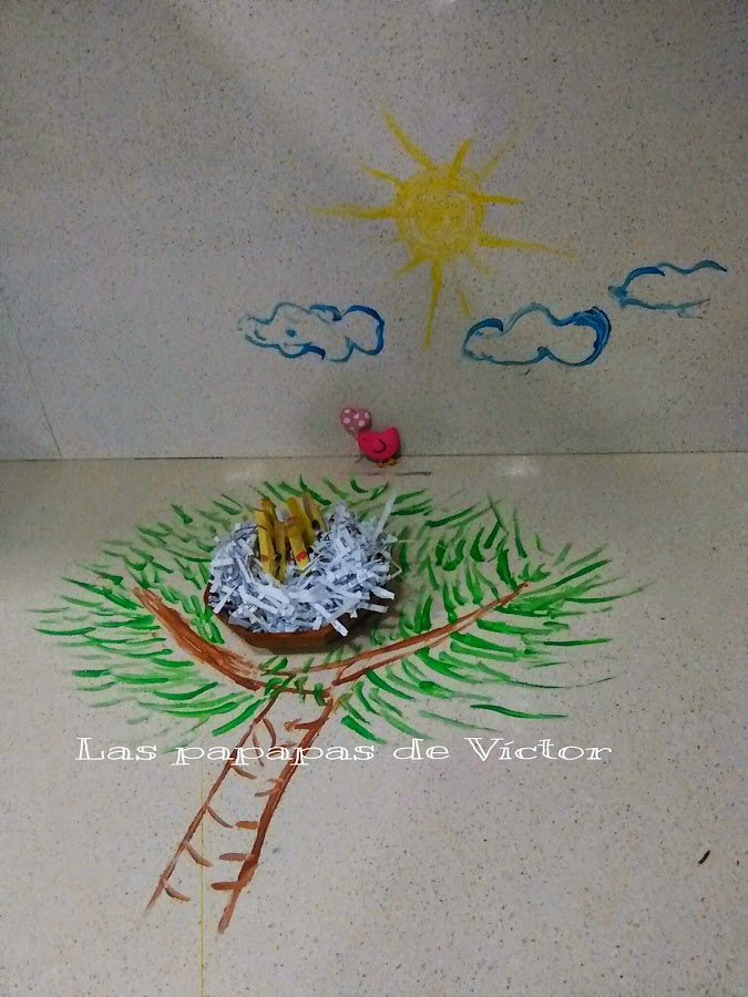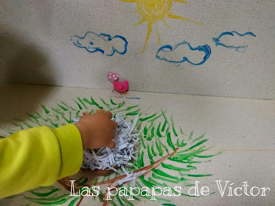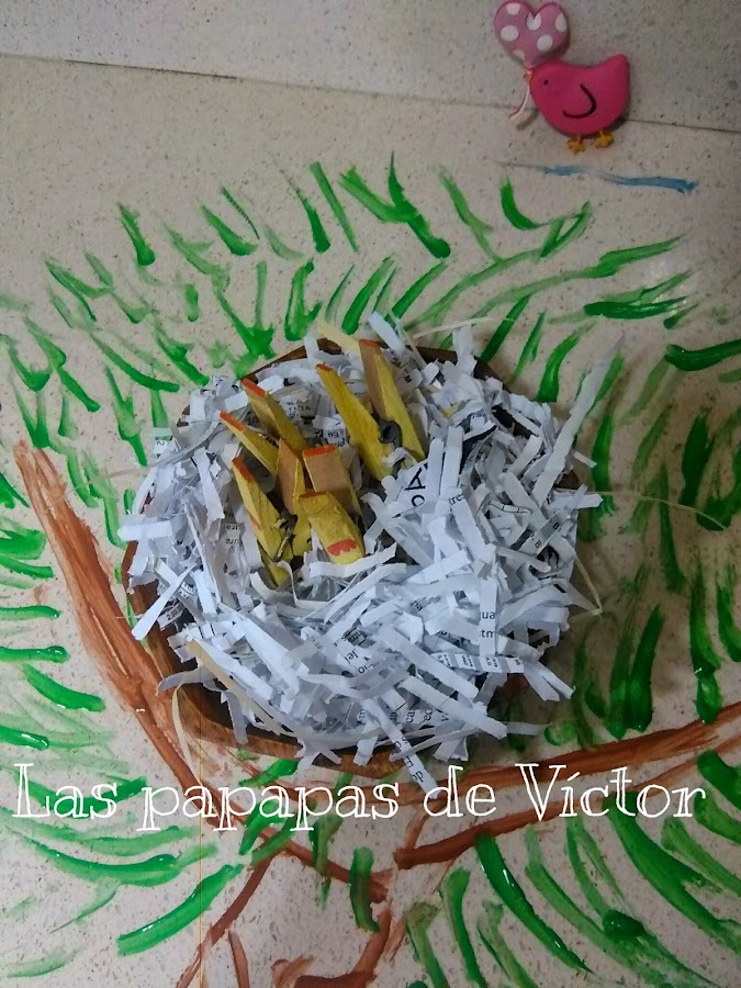 Buscad papeles que no os sirvan o las pajitas que vienen en las hueveras e ir haciendo el nido