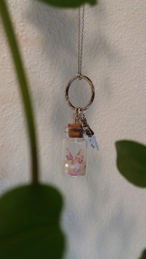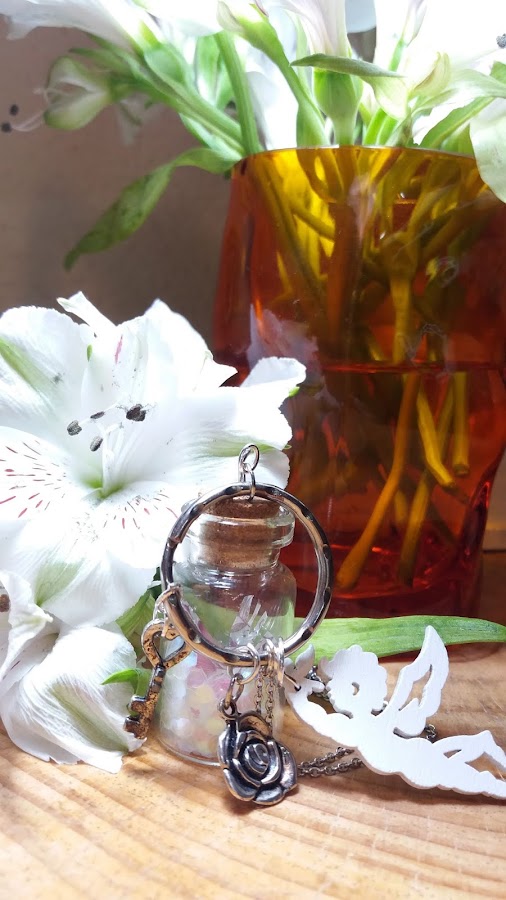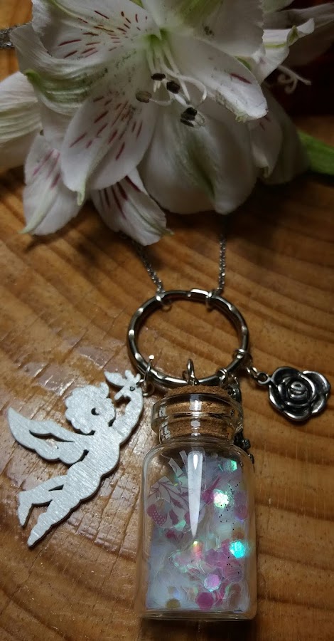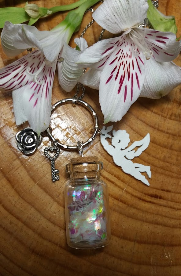 La mariposa que está dentro de la botellita de cristal, es mágica !!!!!, ella fabrica polvos de hadas. Y aunque Campanilla también los fabrica, siempre le faltan para sus amigos Peter Pan, los gemelos, Wendy y sus hermanos.