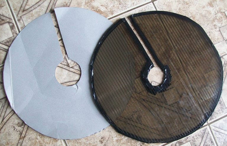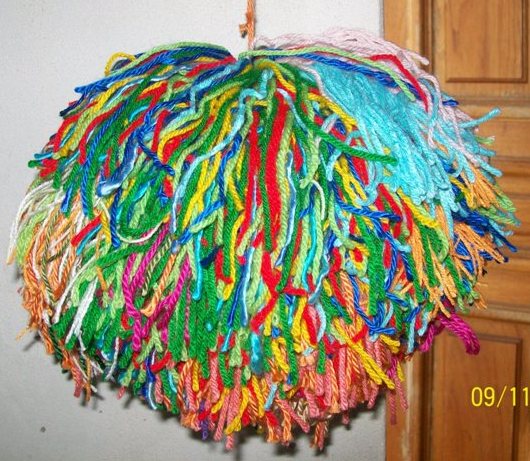 Está hecho con un molde de 30 cm. de diámetro. Con restos de lanas de diversos colores.