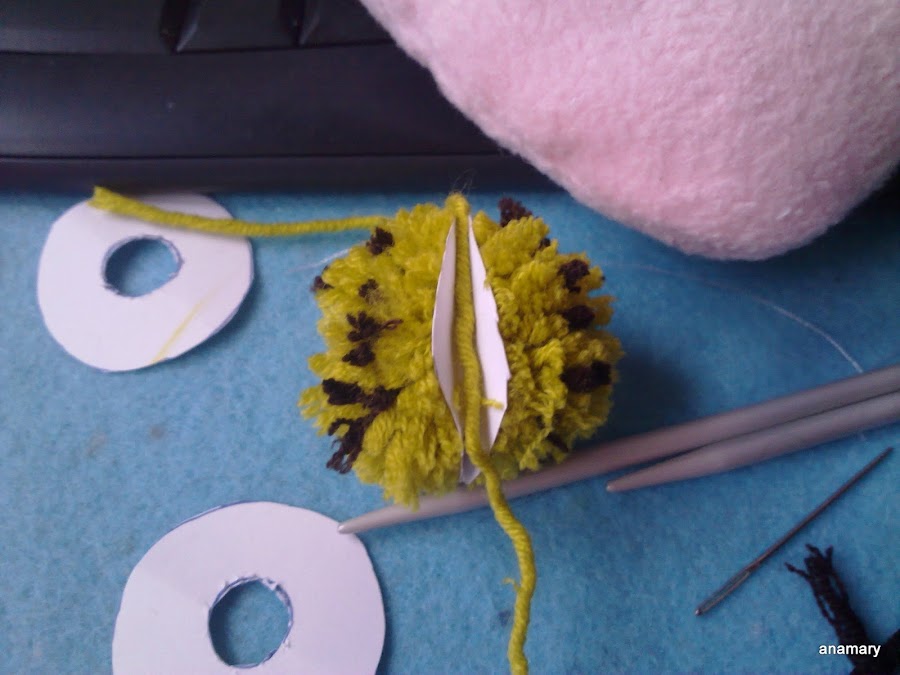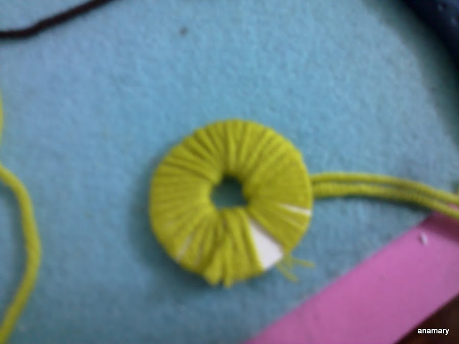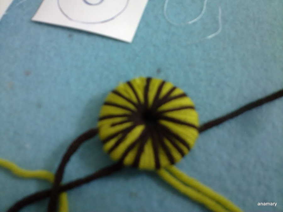 vamos hacer unos pompones pero como se hacían antes de haber esta nuevas herramientas,yo tengo una para hacer pompones pequeños ,pero me gusta más hacerlos de esta manera...
