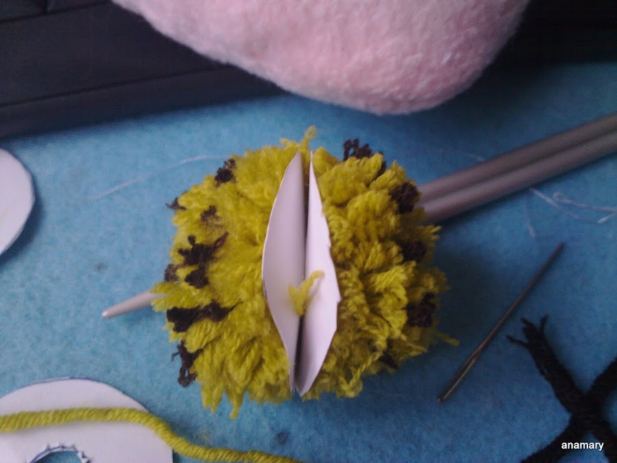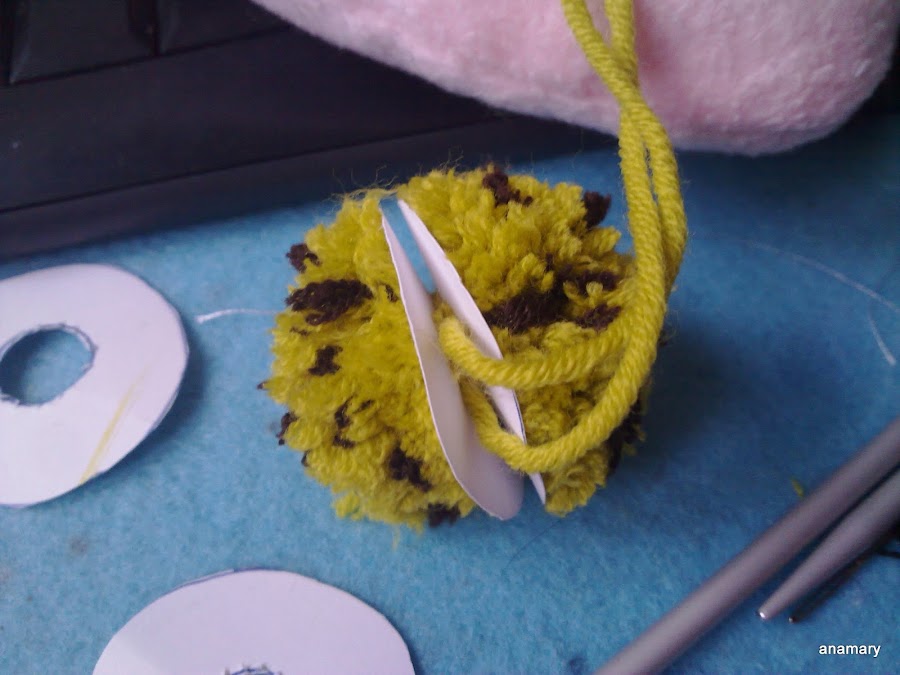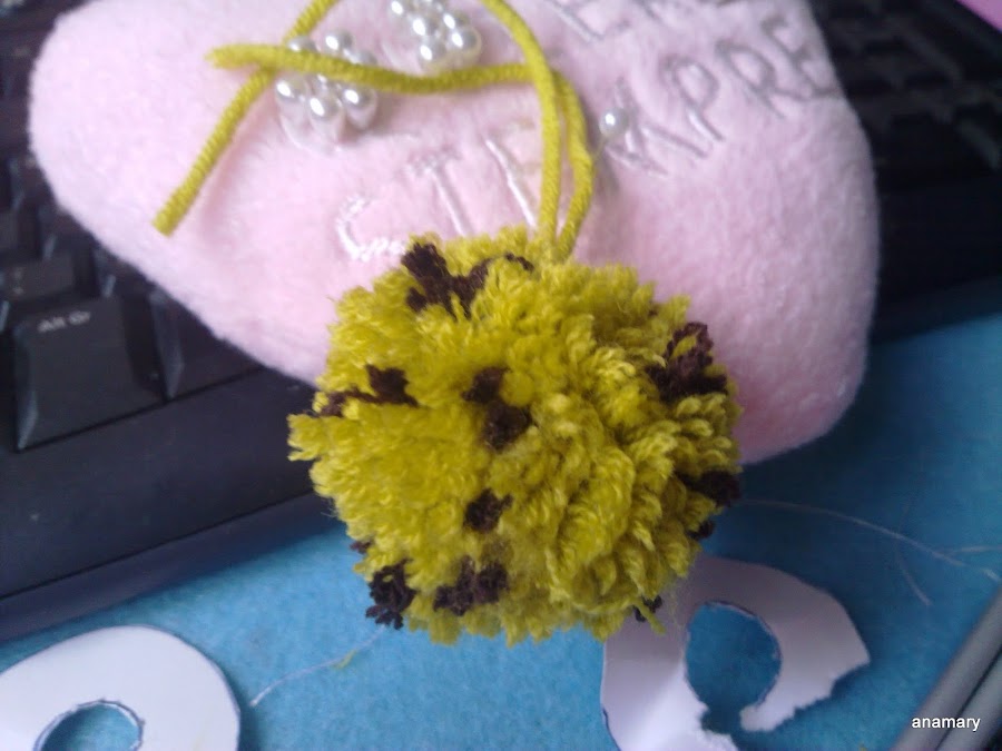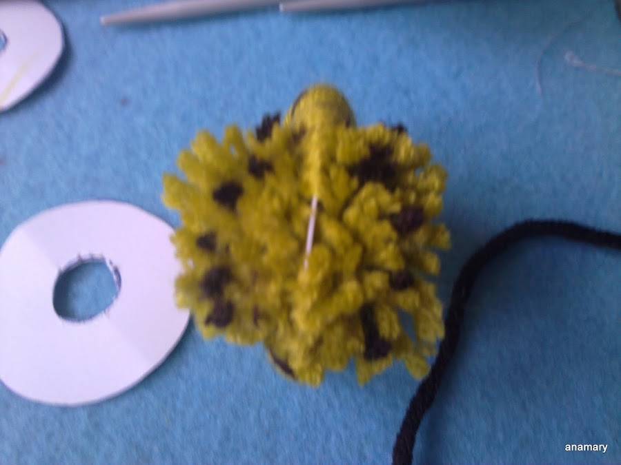 asi nos quedara el pompón,con una tijera le vamos cortando algun hilo que ha quedado más largo