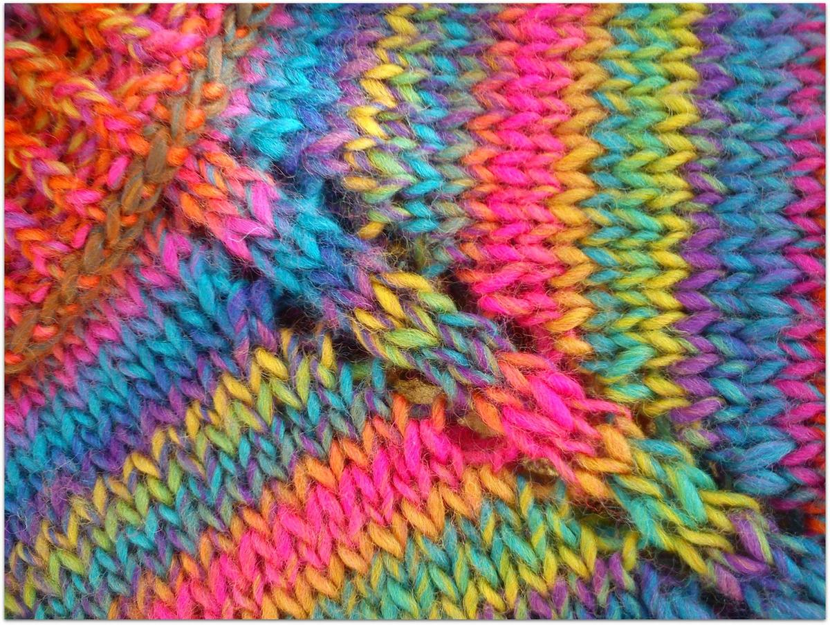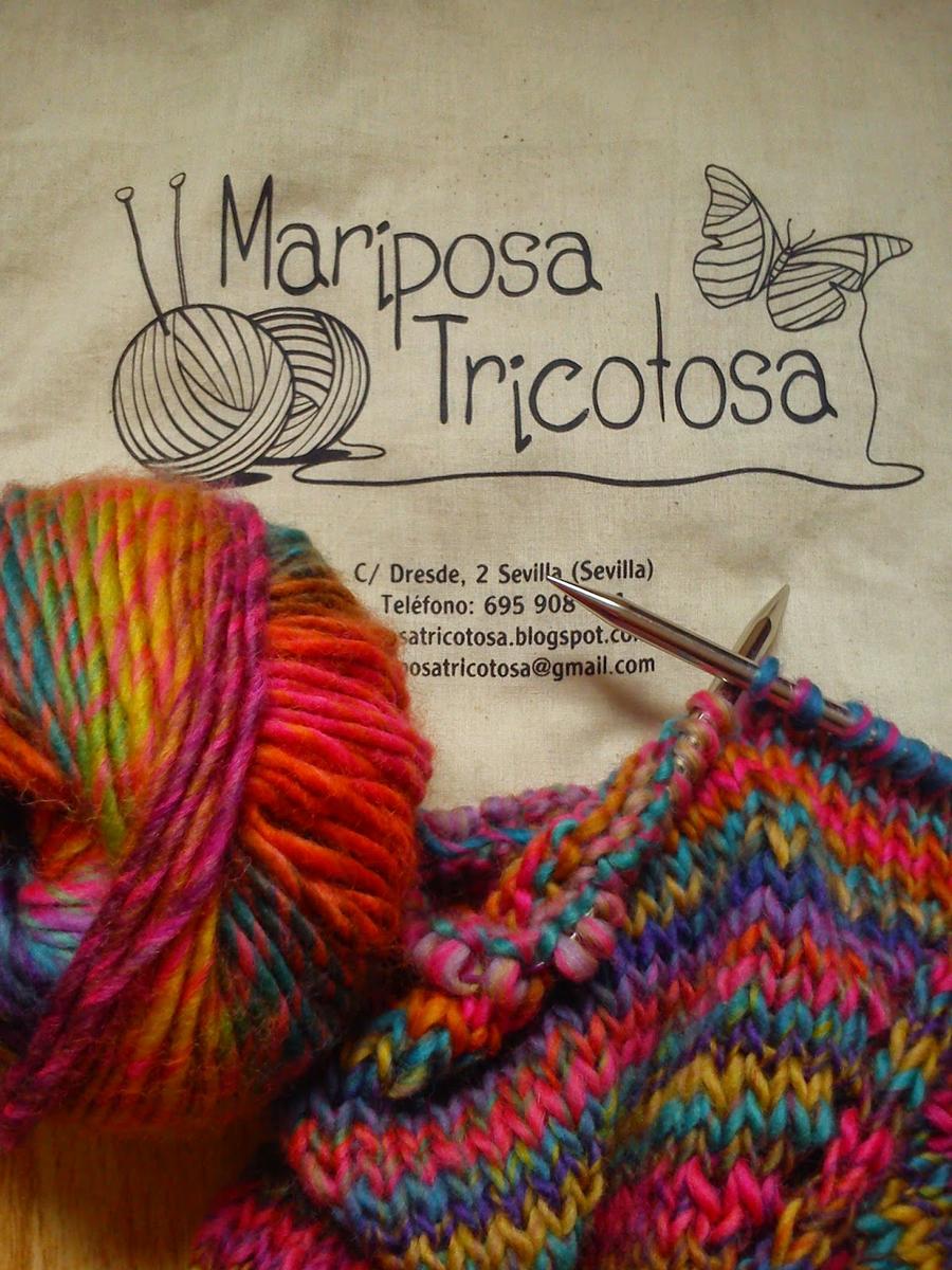 Aquí véis en detalle la lana , que tiene un colorido maravilloso y cómo quedan los crecidos o aumentos con la hebra.Con un agujerito.