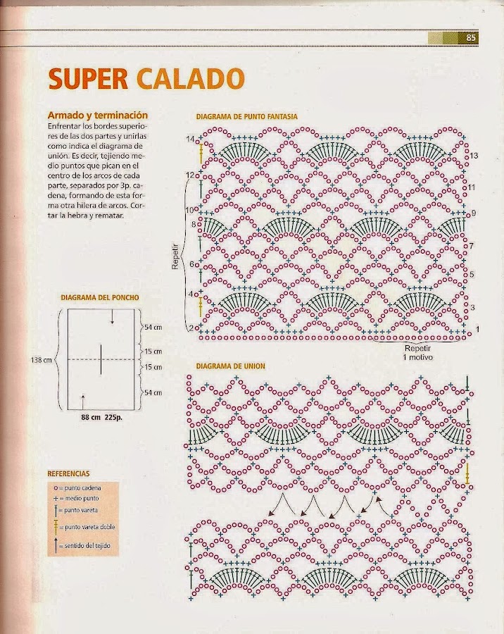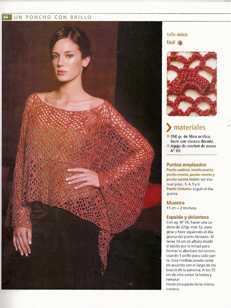 Patrón para realizar un bonito poncho calado a ganchillo...