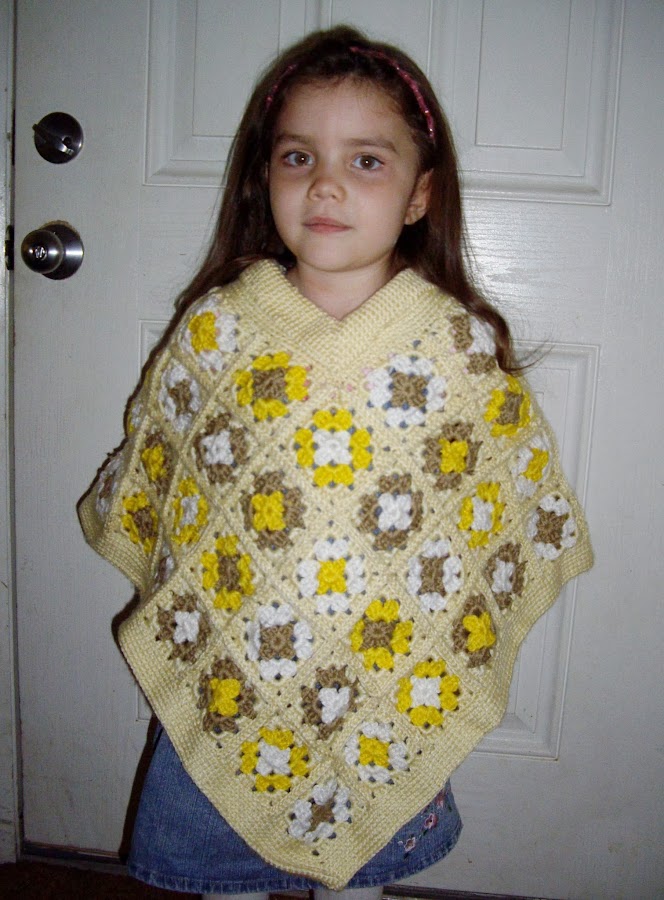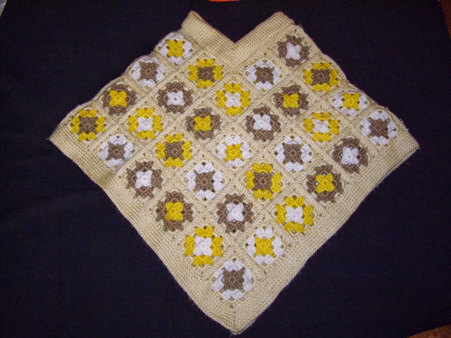 Hola, este poncho lo realice para mi hija, sinceramente tenia ganas de aprender a tejer cuadrados a crochet, y encontre en una revista este ponchito. Aproveche restos de lanas que tenia,... y creanme es muy facil de hacer!!!