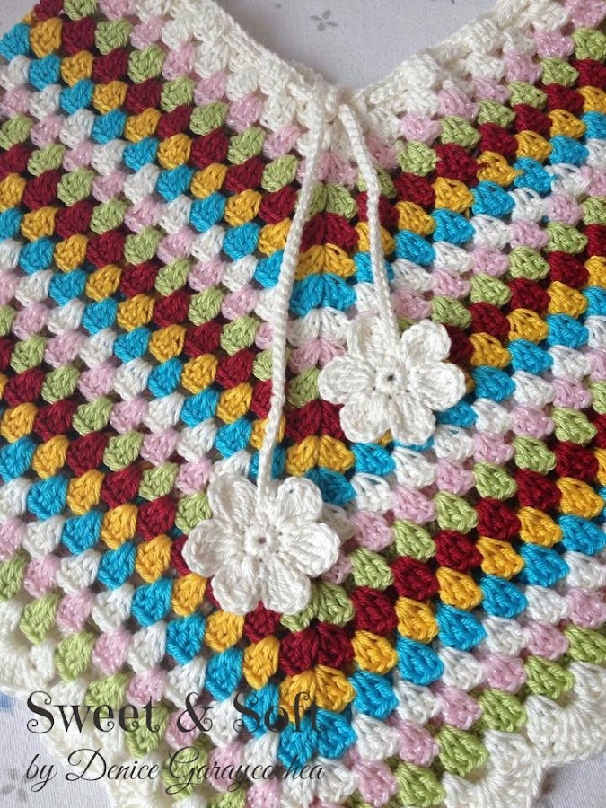 Otro aliado de los dias primaverales, este Ponchito colorido, con FLORES como detalle, para las princesas de la casa, modificando el esquema, aumentando o disminuyendo podemos adecuarlo a diferentes edades, es muy fácil de realizar, está hecho enteramente en puntos altos, cadenitas y aumentos...