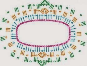 Se empieza montando cadenitas, el número de ellas dependerá del tamaño de la persona, si es un niño o un adulto, yo normalmente voy midiéndolo en el cuerpo , tomo la medida del cuello y decido lo calado o lo estrecho que quiero que sea, luego se toma el centro de la espalda y la del pecho y es allí dónde se irá aumentando para ir abriendo el tejido y formar las puntas que tienen los clasicos ponchos. Por lo demás no queda más que seguir el esquema.