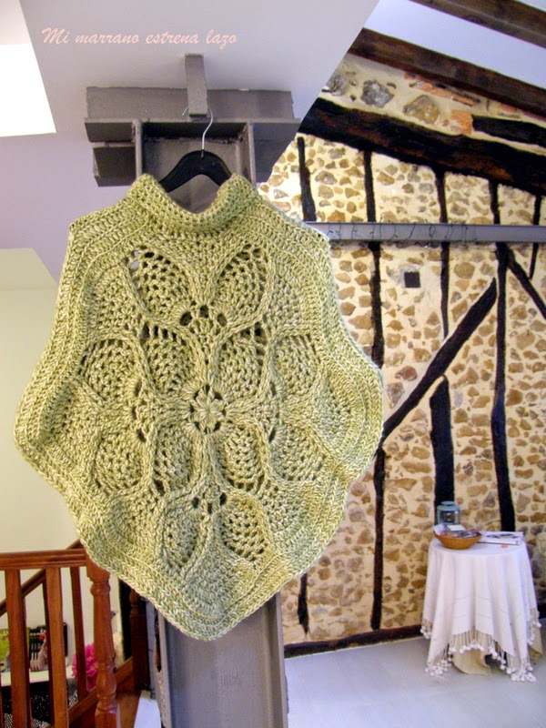 Hoy os traigo un poncho muy primaveral, verde jaspeado clarito, de una lana ligera y suavecita, de DMC.