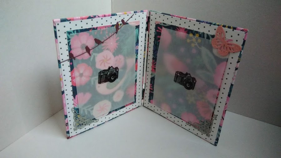 El interior le puse un papel vegetal donde va la foto, al ser un regalo me gusta dejarlo marcado y me pareció mejor este tipo de papel que una cartulina blanca...