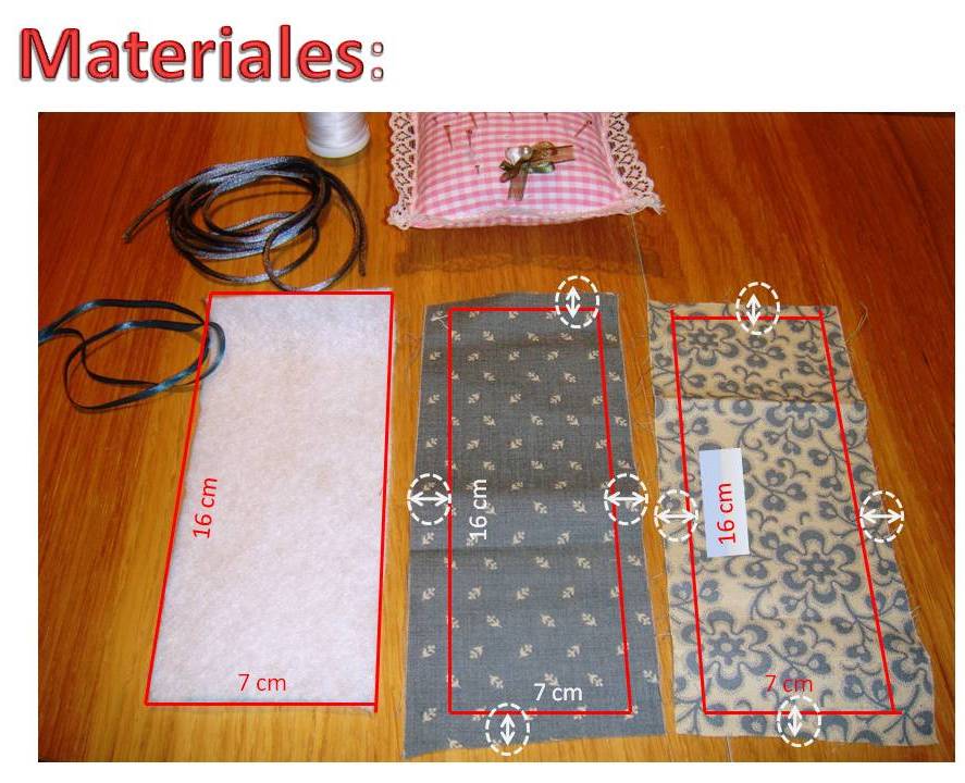 1 Rectángulo de tela para el interior (16 cm x 7 cm) (ojo deja un poquito más para el margen)