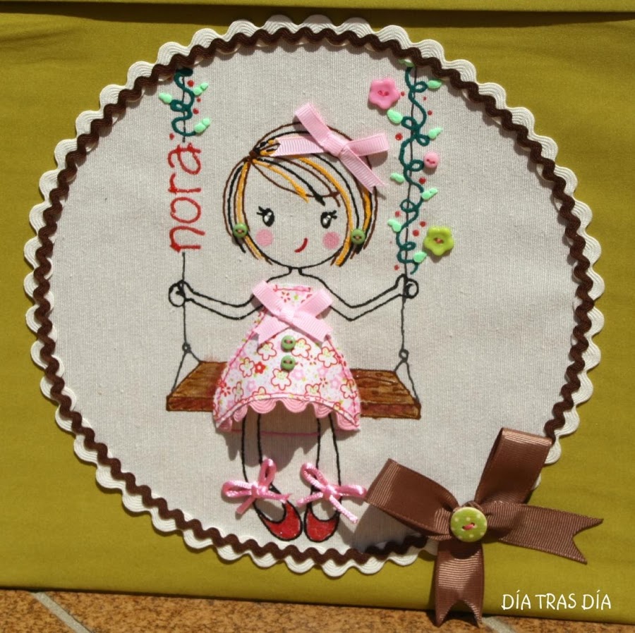 En esta ocasión he decorado la caja con el diseño de Ro-ro columpio, que a mi hermana fue el que le gustó. Fue además totalmente personalizada, con el nombre de la peque y haciendo a la niña con el pelo rubito, como el de mi sobrina.