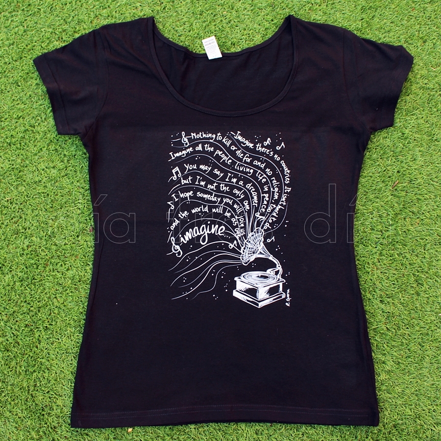 ¿Queréis ver cómo quedó la camiseta para Mati decorada con la letra de Imaginede John Lennon? Pues aquí os la enseño: