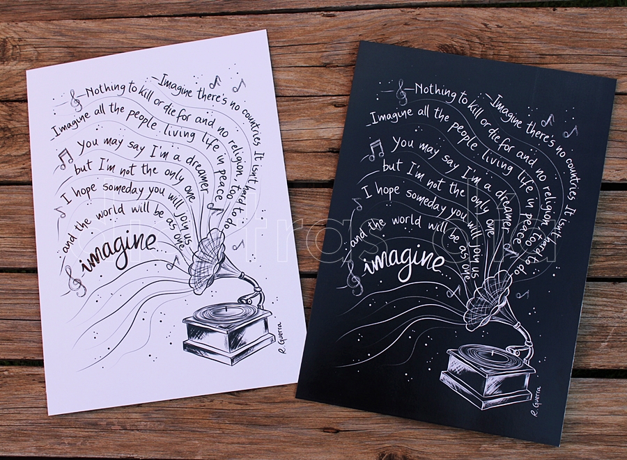 Como me gustaba la idea de esta camiseta, en el nuevo diseño que preparé para Mati decidí incluir el gramófono. Pero como desconozco cuáles son sus gustos musicales, se me ocurrió adornarla con la letra de una canción que casi todos conocemos y que lanza un bonito mensaje de esperanza.