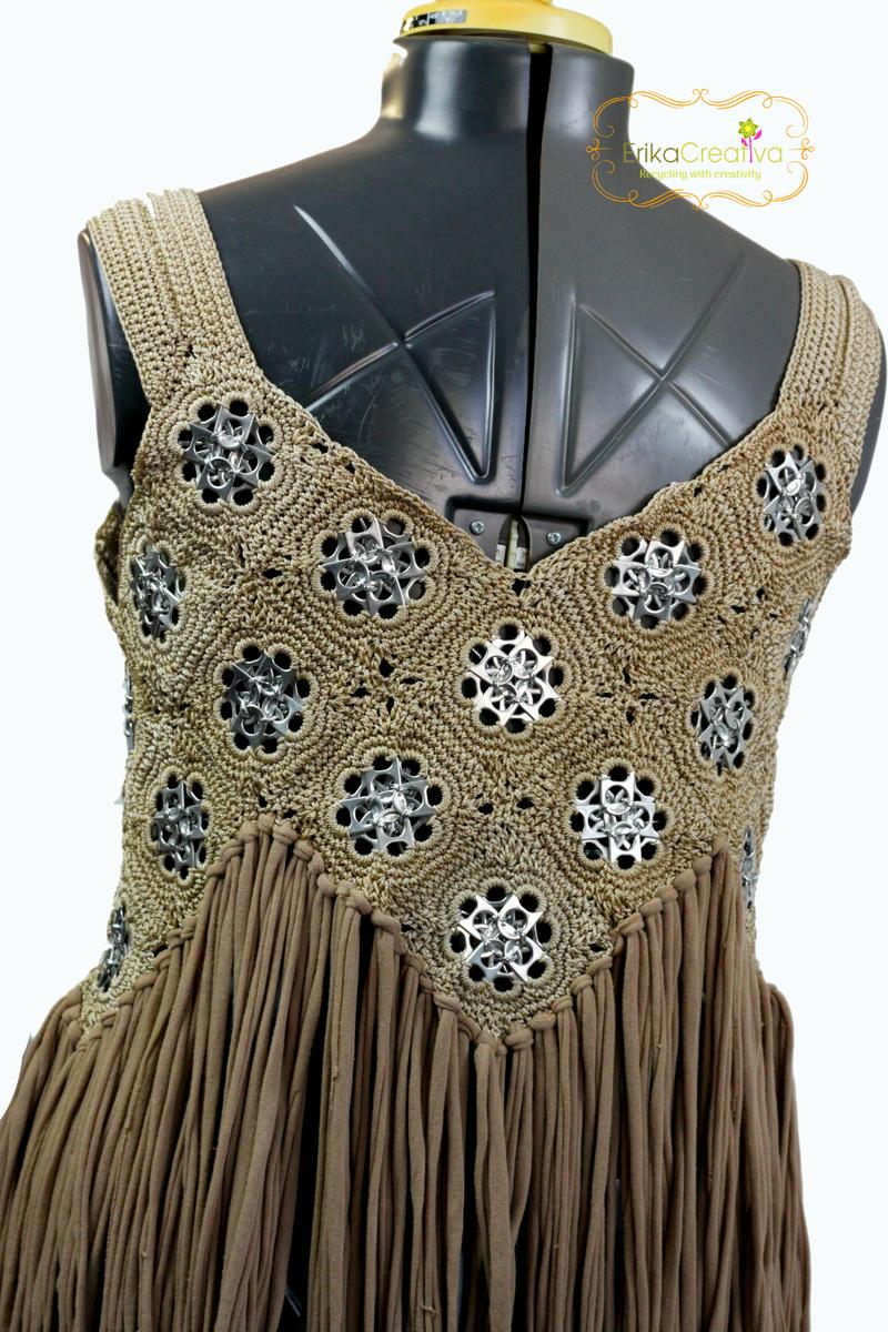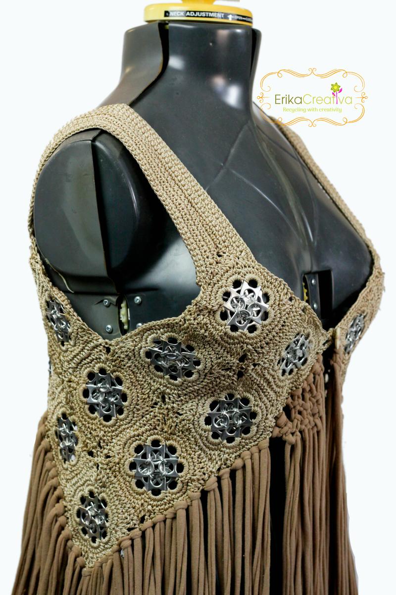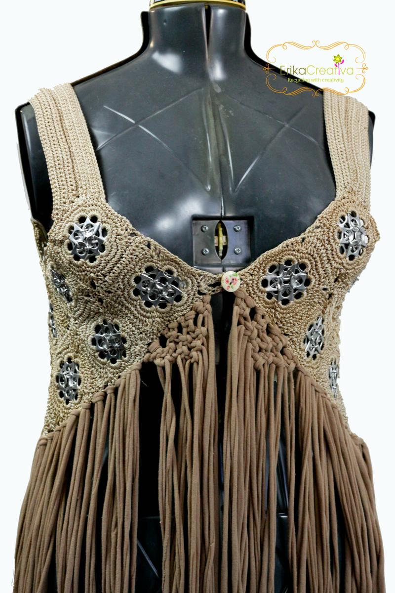 I’ve been trying to get to pull my followers to my Facebook page so that you don’t miss the new projects I’m working on. Speaking of, this is a vest I recently completed and finally one that I had in mind of a really long time. My son helped me with some macrame knots since he is into macrame. I should say the result pleases me a lot, not so much the yarn because without noticing I used 2 different hues of the same color. Oh well! I had to redo the straps because the first ones I added were too big.