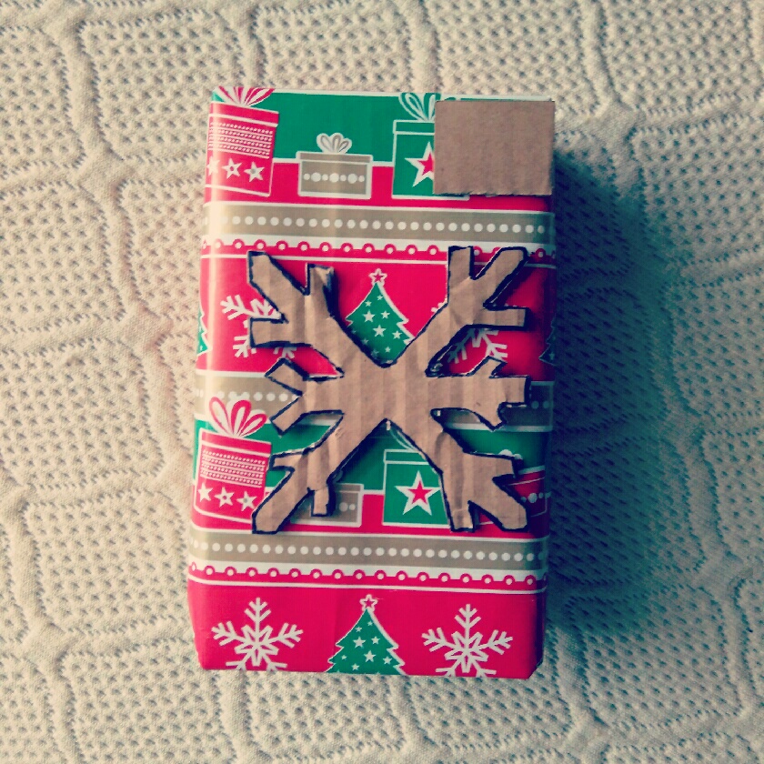 Hemos recortado la silueta de un copo de nieve en cartón para darle un toque más original.