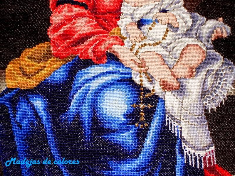 Sus medidas son de 270 x 200 puntos, lleva 46 colores diferentes? y todo el fondo completamente bordado, así que os haréis una idea de su complejidad.