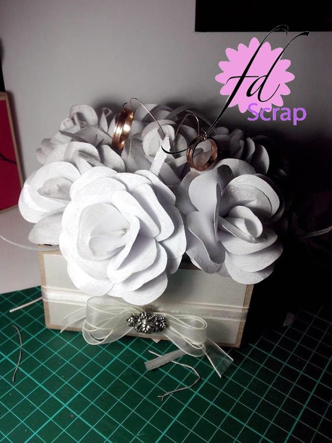 Como ven puse las flores de lo que iba a ser un bouquet en una cajita que realicé con la técnica de cartonaje.