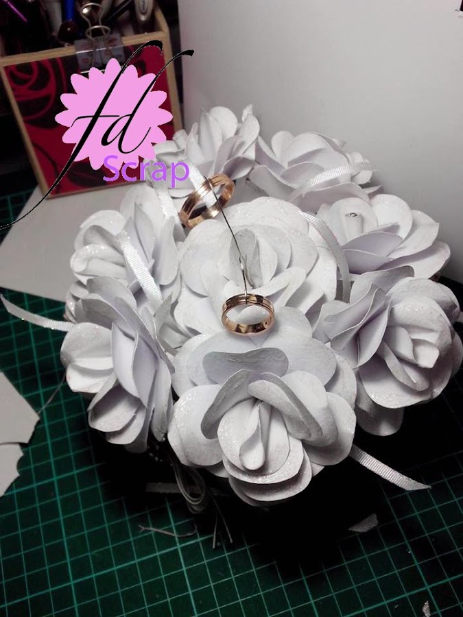 Lo que hoy les traigo es un porta anillos de matrimonio. La novia quería que sea como un ramito pequeño de rosas en color avory (porque ese era el color de su vestido), pero que tuviera una base. Necesitaba que la niña que lo lleve no tuviera problemas de lastimarse si es que fuera un ramo normal. Y sobre todo, que del centro salieran como dos ganchitos por encima de las rosas que sostuvieran los anillos.