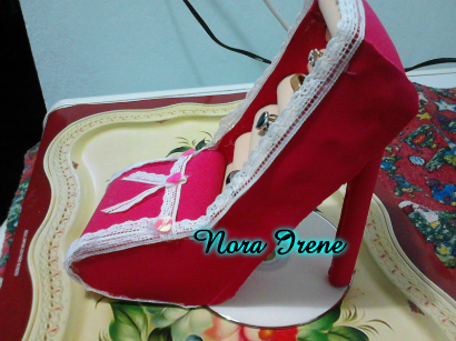 DEL FORO DE MANUALIDADES ENTRE AMIGAS, HE APRENDIDO HA HACER ESTE HERMOSO ZAPATO TAMBIEN PORTA ANILLOS