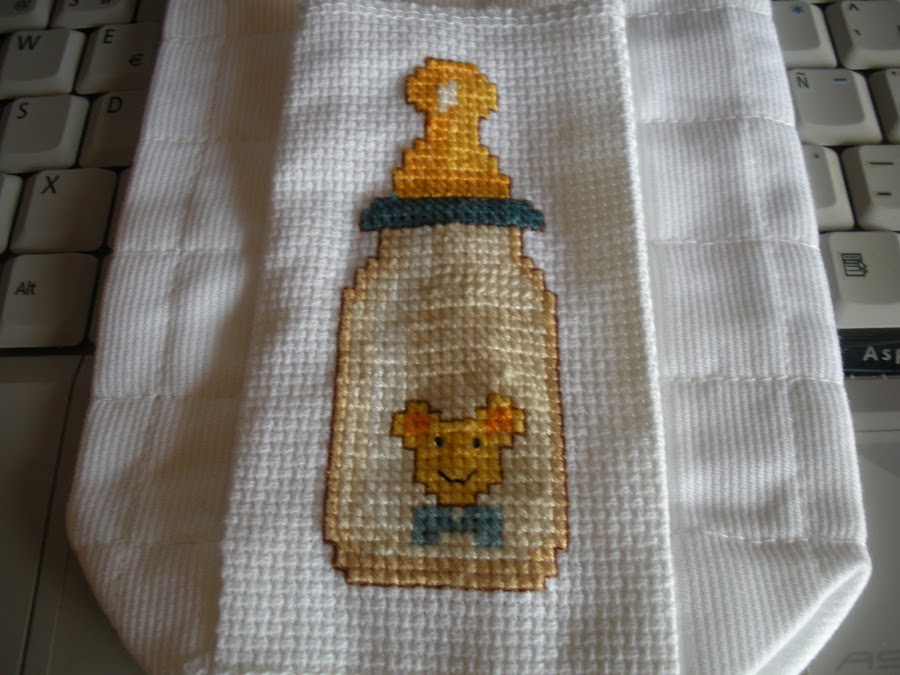 Ahora toca el porta-biberones, esta gracioso a que sí? Cuantas cositas le estoy bordando jejejjje