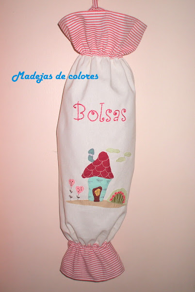 En los extremos, una tela con listas rojas y a punto cadeneta, bordada la palabra bolsas.