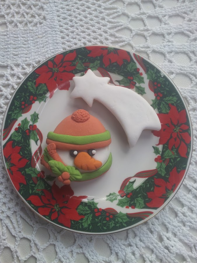 Pues eso,lista la carita,se me ocurrió darle una decoración al osito. Pobrecito que hace mucho frío,qué menos que una bufandilla simbólica.