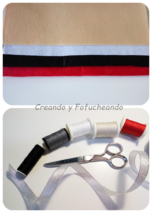 ♦ Fieltro rojo,blanco,y retalillos de Fieltro negro y marrón claro o color carne