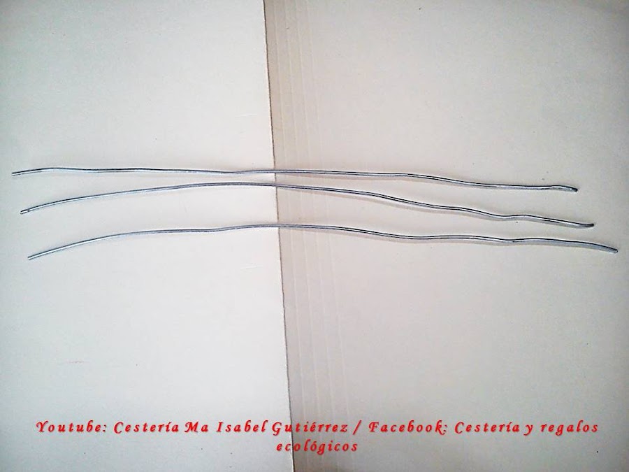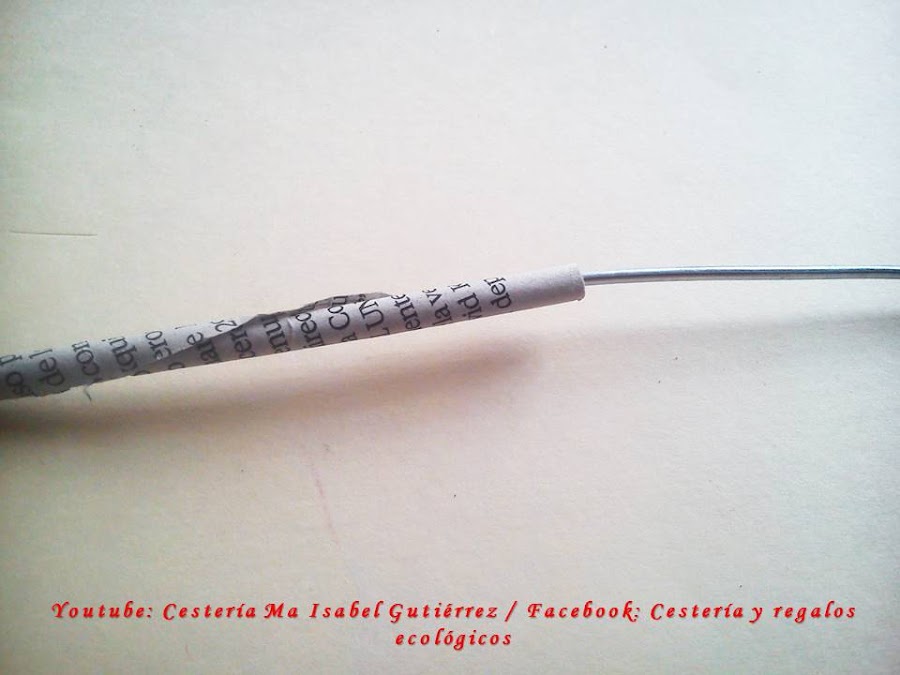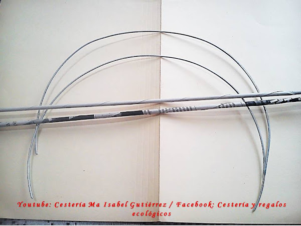 Cortamos dos varillas de papel del mismo largo, éstas son de 50 cms., también cortamos dos tramos de 50 cms., de alambre semi-grueso y fuerte pero que podamos moldear un poco.