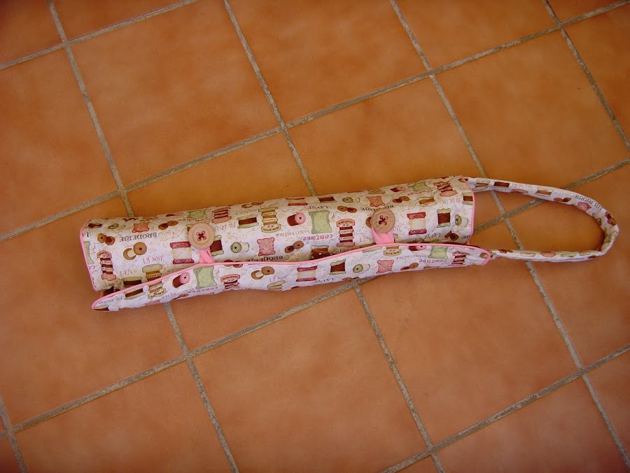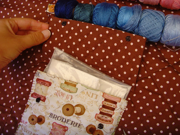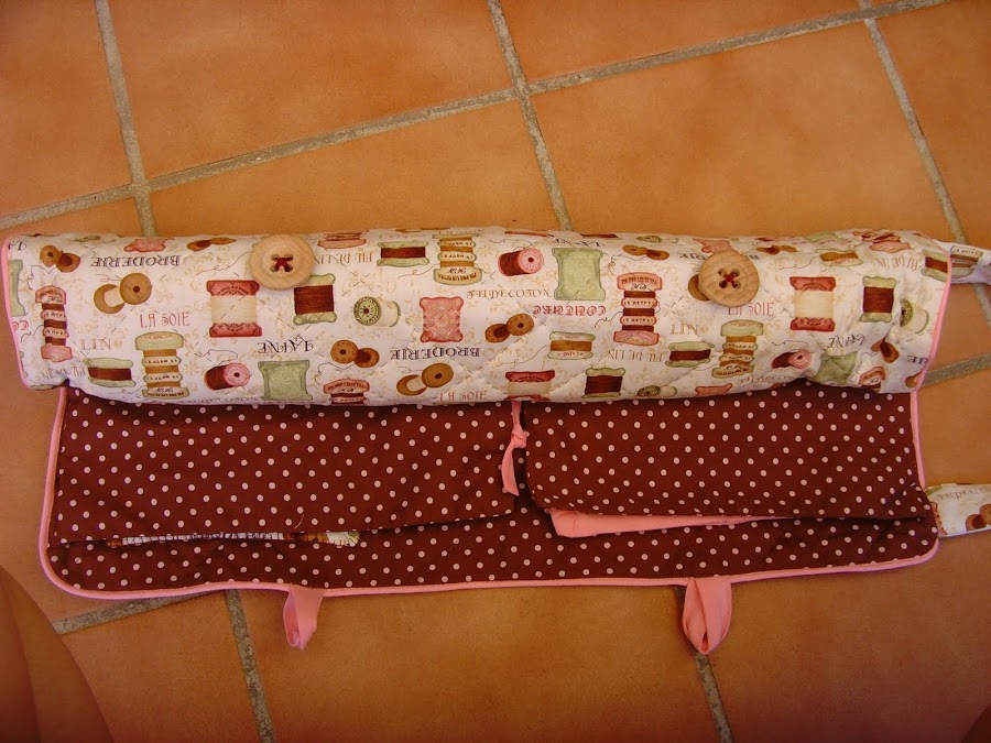 Después de esto pensé que estaría bien hacer un espacio para llevar también las tijeras, las agujas de bordar, e incluso algun bolsillito donde meter el papel de plancha o algun rrestillo pendiente ...