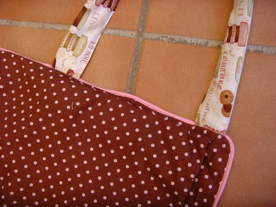 Y aqui os enseño el asa, la he cosido entre el forro interior y la guata, para que no se viera por fuera.