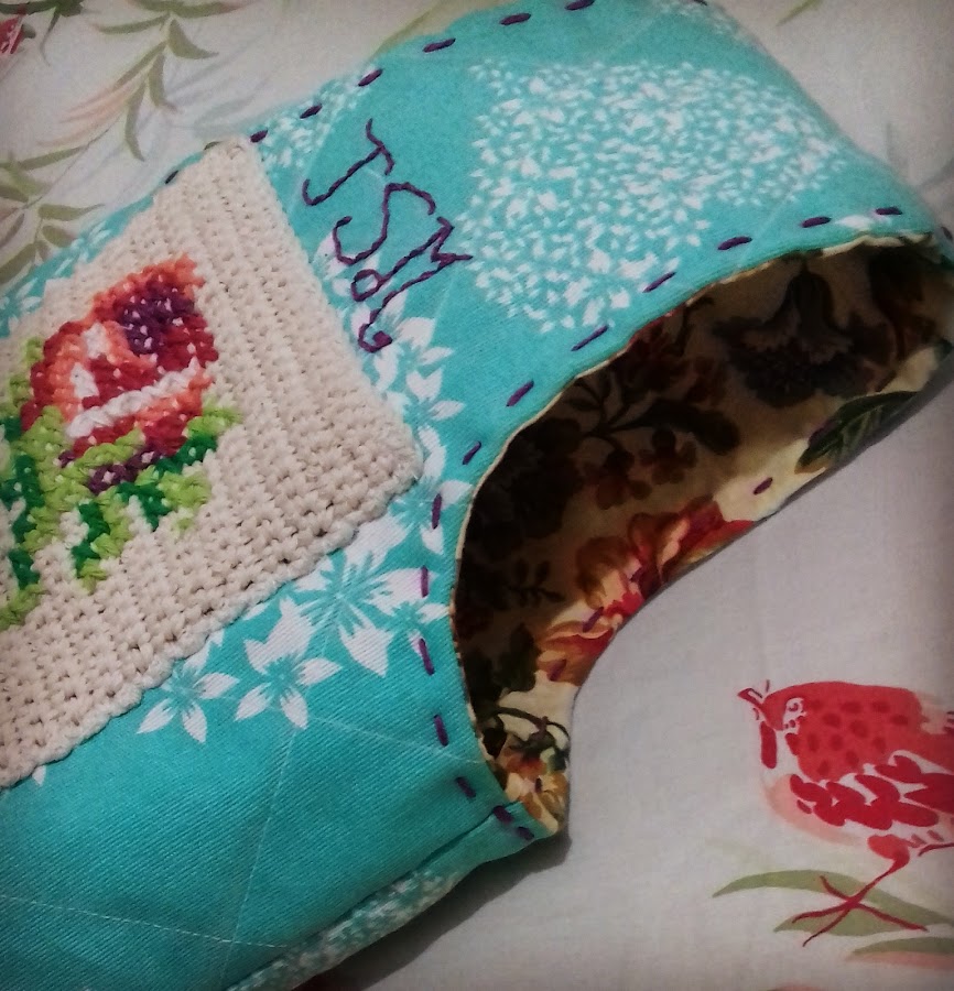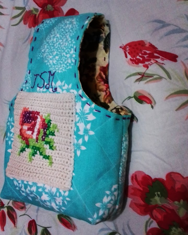 Así es que me apure a realizar mi propia bolsa también porta ovillo para tejer más tranquila y prolijamente...