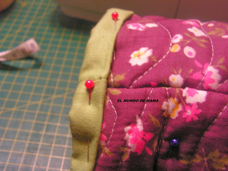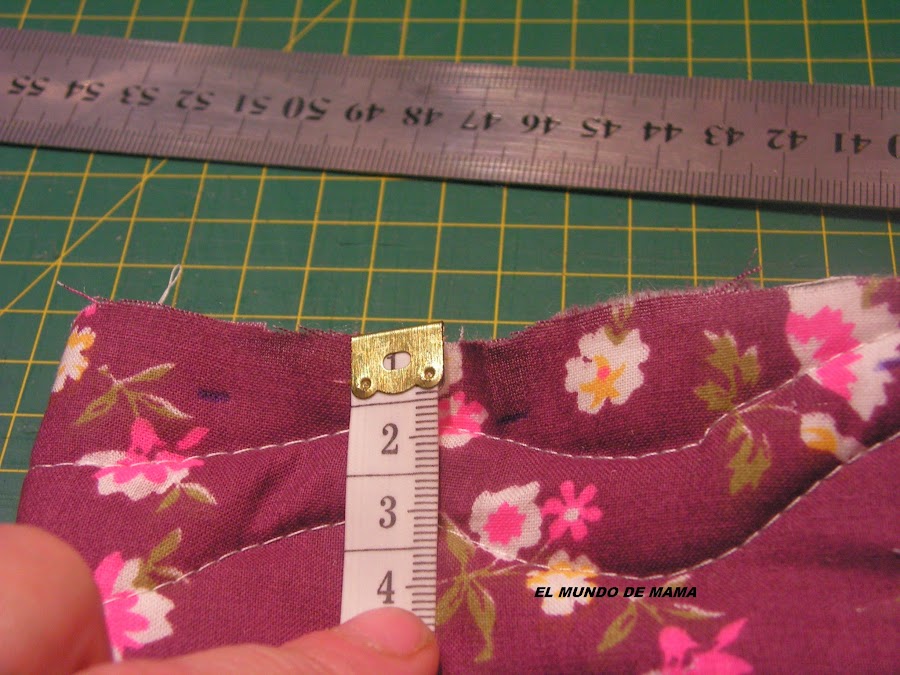 Marcamos 1 cm en el borde giramos y sujetamos con alfileres