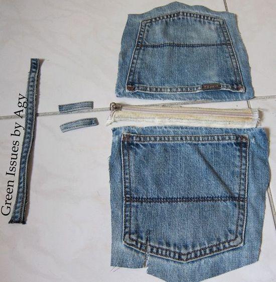 O jeans foi reciclado e transformado em um belo porta moedas.