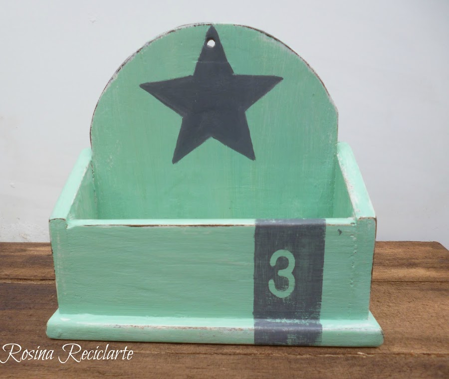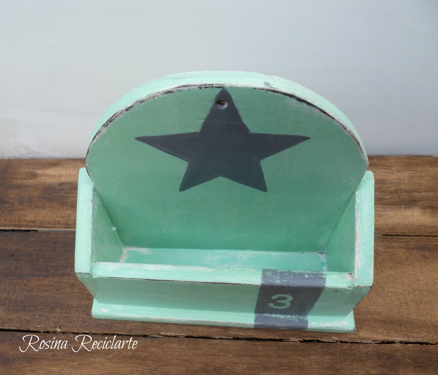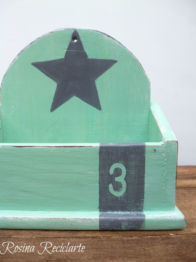 Después pinté una estrella en el mismo gris como para disimular las imperfecciones que tenía la madera,finalmente lijé los bordes y barnicé.