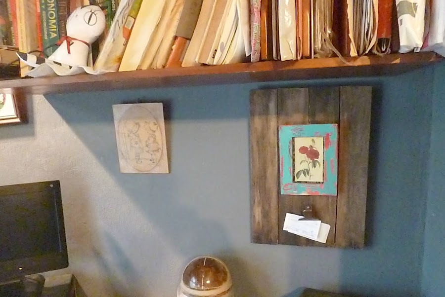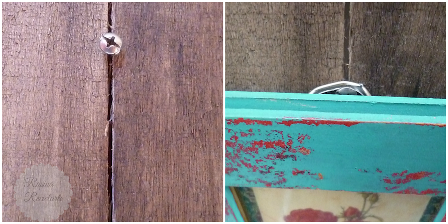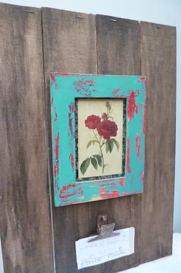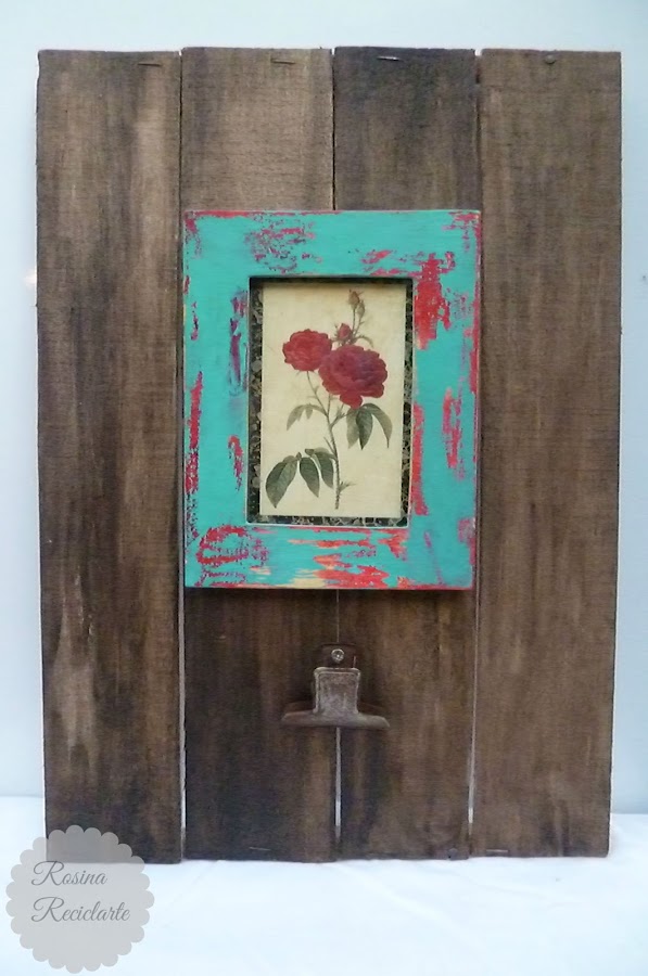 Tan simple como lijar un poco,(tampoco mucho eh?) darle una mano de tinta para oscurecerlo,ponerle dos tornillitos pegados con silicona entre las tablas y colgar el cuadrito.