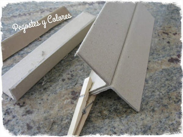 1.- Conseguí 4 piezas de cartón que ya estaban precortadas, de esas que vienen en algunas cajas de muebles como empaques para protección. Están hechas de cartón muy duro y resistente y lo que mas me gusta es que vienen en forma de escuadras.