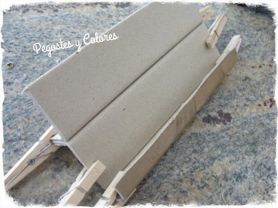 Pegamos la pieza y de nuevo sujetamos con los broches. Deje mi estructura con ese pegamento secando hasta el día siguiente, que es lo que recomienda las instrucciones del producto.
