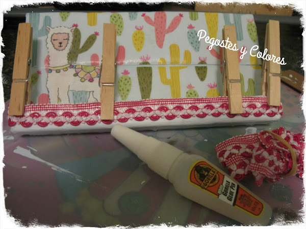 8.- Por ultimo agregue una cinta con pegamento que recordé que tenia guardada, tenia azul y rosa, pero mi hija eligió la rosa. Tambien la sujete con broches y la deje secar toda la noche.