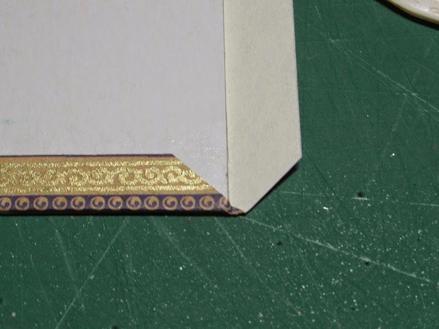 Con un lapicero he marcado los bordes del papel grande y de nuevo he cortado las esquinas en bisel para que queden ajustadas al pegarlas.