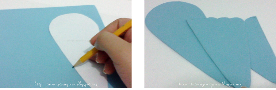 Asi que empezamos transfiriendo los moldes a la goma eva (foami) y cortamos las piezas.